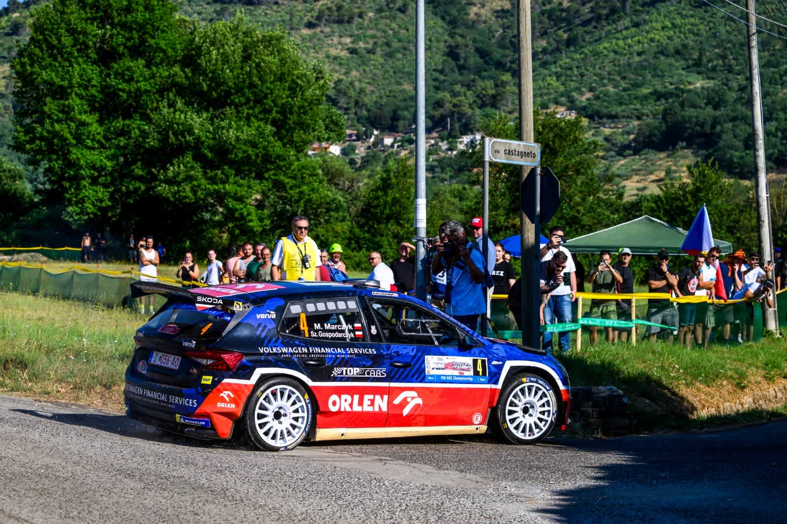 Driving a Škoda Fabia RS Rally2 on Pirelli tyres, Mabellini was fastest through Rally di Roma Capitale’s 6.45-kilometre Fumone Qualifying Stage by 2.0sec ahead of Michelin-equipped ERC points leader Miko Marczyk.